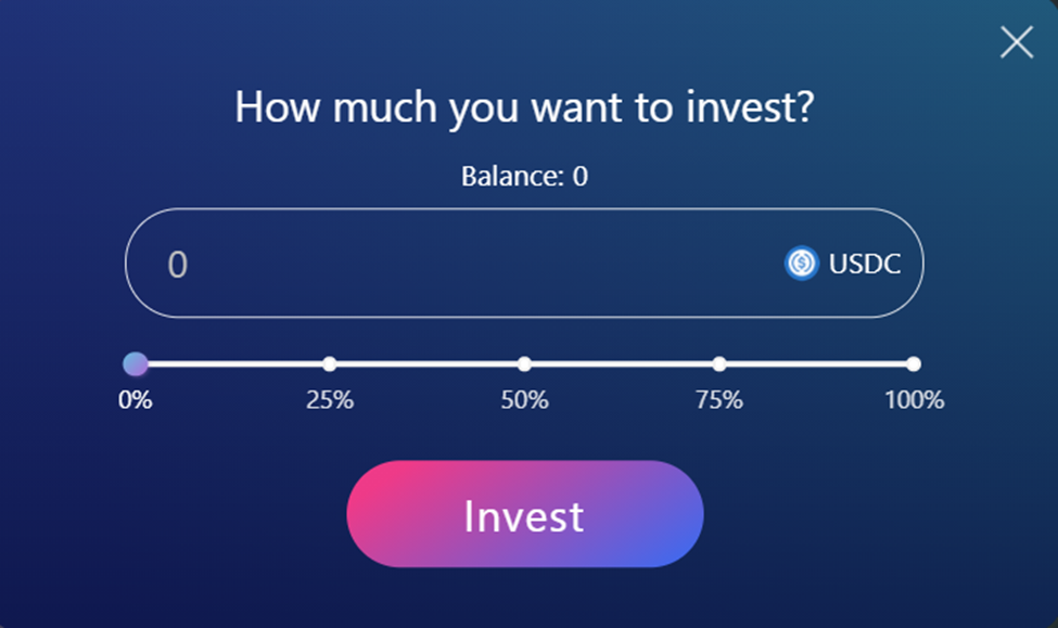 3 “Invest”e tıklayın ve ardından yatırım yapmak istediğiniz USDC miktarını girin.