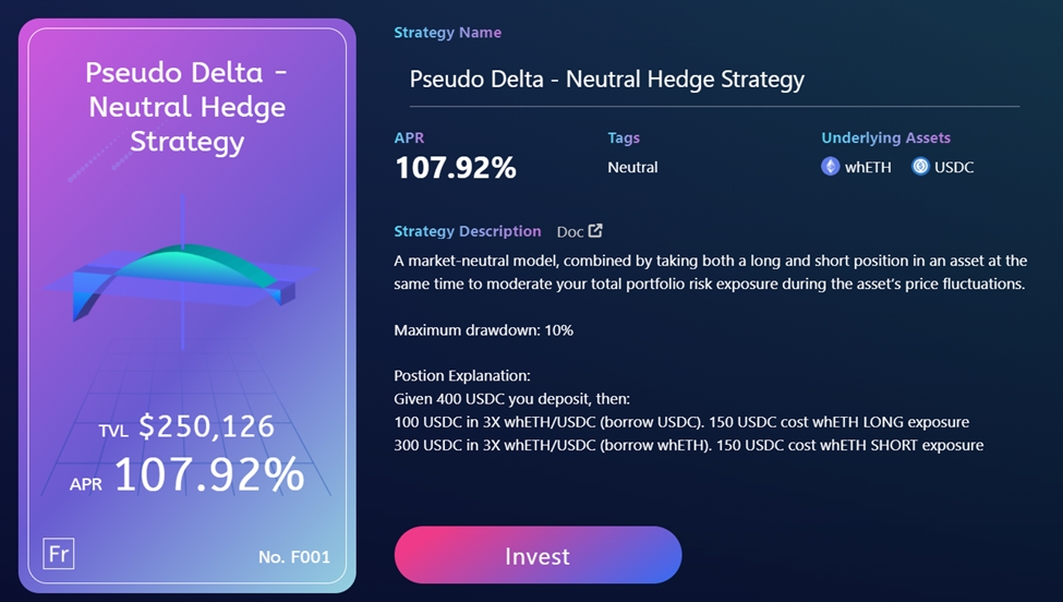 Sözde Delta Tarafsız Riskten Korunma Stratejisi için seçilen temel varlıklar, $whETH ve $USDC’dir. Bu varlıkları nispeten istikrarlı oldukları ve mükemmel kaldıraç getirilerine sahip oldukları için seçiyoruz.